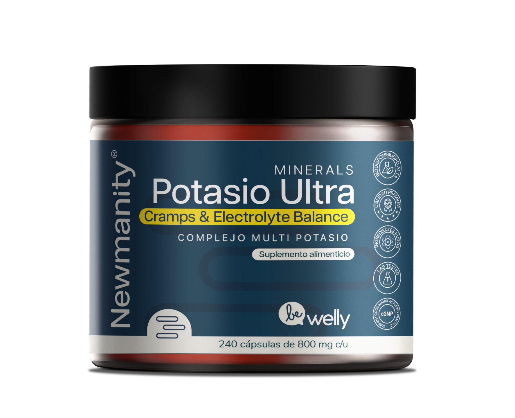 Combinación de potasio en formas altamente absorbibles (citrato, gluconato, aspartato y más) que regula la presión arterial, previene calambres y mejora la hidratación celular. Ideal para quienes tienen dietas bajas en potasio, sudan mucho o experimentan debilidad muscular.